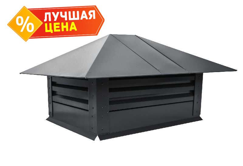 Дымник на трубу с жалюзи 520х390мм 0,5 Quarzit с пленкой RAL 7024 мокрый асфальт