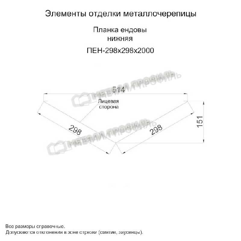 Планка ендовы нижняя 298х298х2000 (ECOSTEEL-01-Кирпич-0.5)