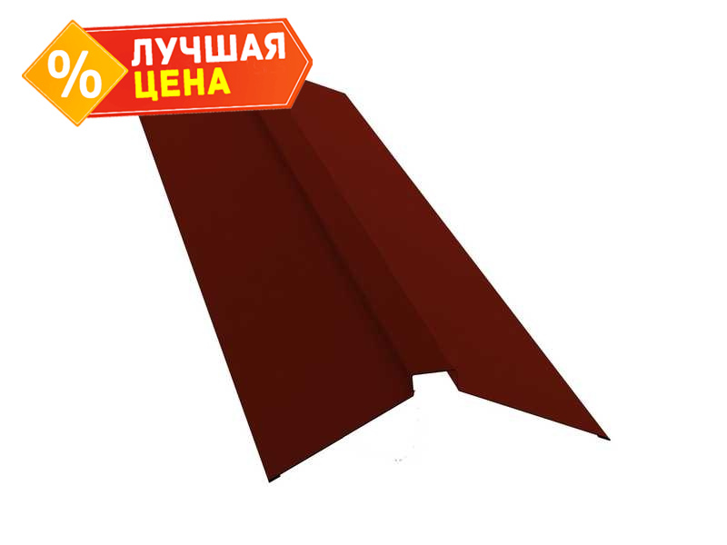 Планка конька плоского Grand Line 115х30х115 0,5 GreenCoat Pural BT, matt RR 29 красный (RAL 3009 оксидно-красный)