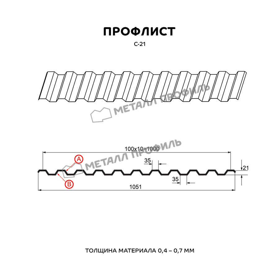 Профлист Металл Профиль С-21 0,4 Полиэстер RAL 3011 Коричнево-красный - это качественный и надежный материал для строительства и отделки.