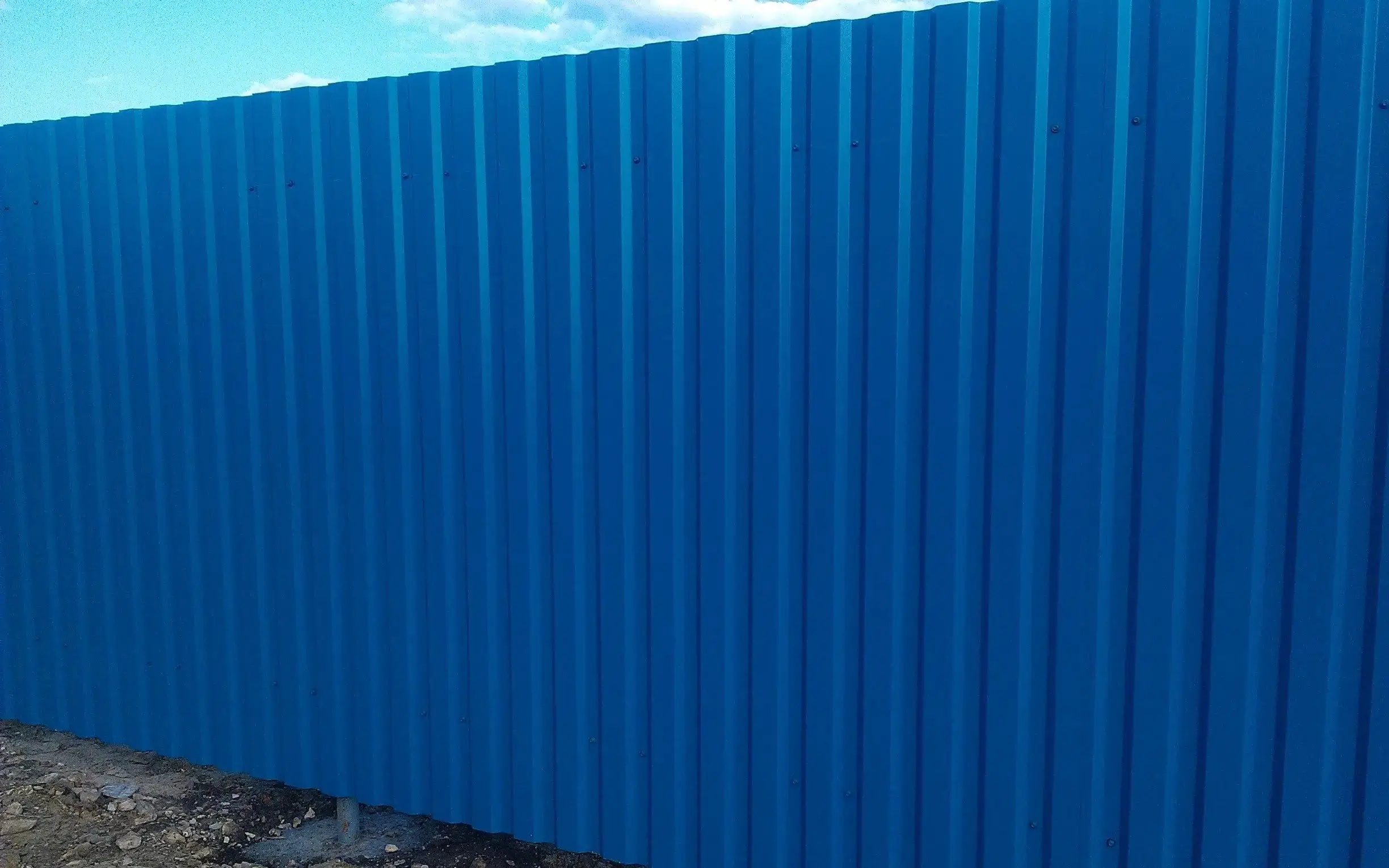 Цвет профлиста - RAL 5005 Синий насыщенный, который отлично сочетается с различными фасадами и создает эстетически приятный облик здания.