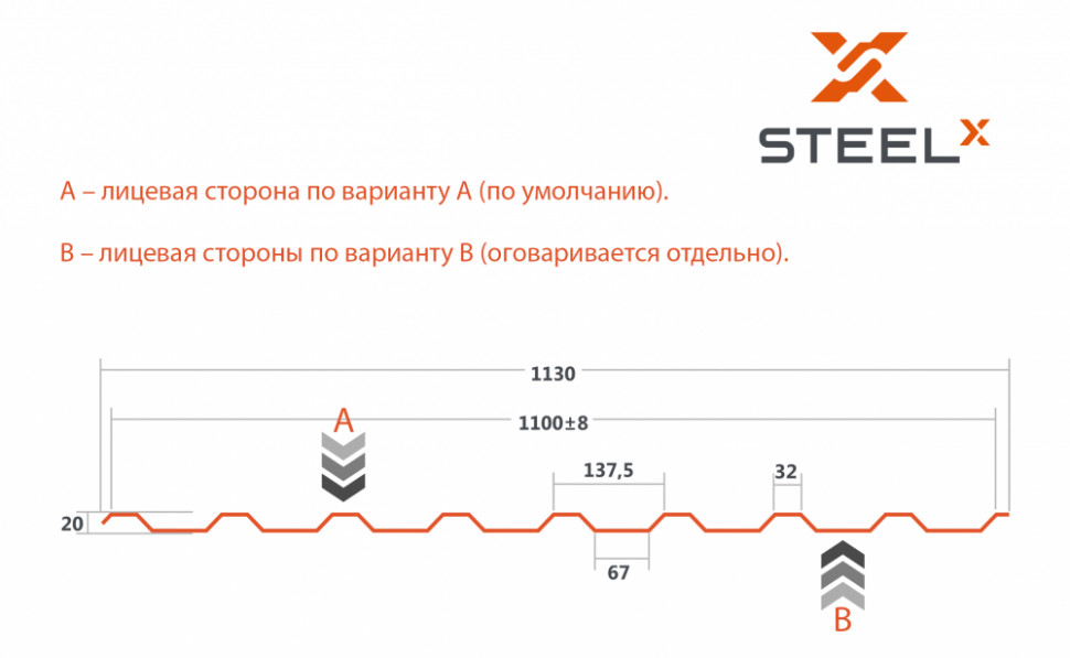 Профнастил SteelX C20 SKARDEX 0,5 RAL 9006 Серебристо-серый