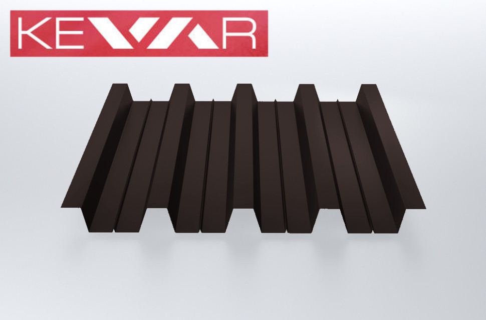 Этот профнастил имеет толщину 0,45 мм, что делает его прочным и долговечным. Благодаря использованию KEVAR в составе материала, он обладает повышенной стойкостью к механическим повреждениям и ультрафиолетовому излучению.